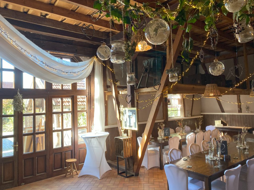 Hierfür bietet unsere gemütliche Feierscheune mit angrenzendem Café die passende Location, um diesen Anlass mit bis zu 100 Personen ausgiebig und ungezwungen zu feiern. Neben der perfekten Location bieten wir Euch ein Komplettpaket aus Speis- und Trank sowie aller gängigen Serviceleistungen, um Eure Feier unvergesslich zu machen.